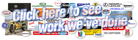 Digital printed photos on adhesive vinyl, vinyl banner signs and wall murals, vinyl race car wraps, vinyl boat wraps, truck wraps, trailer wraps, vinyl stickers and decals for sponsor and dealer advertising.